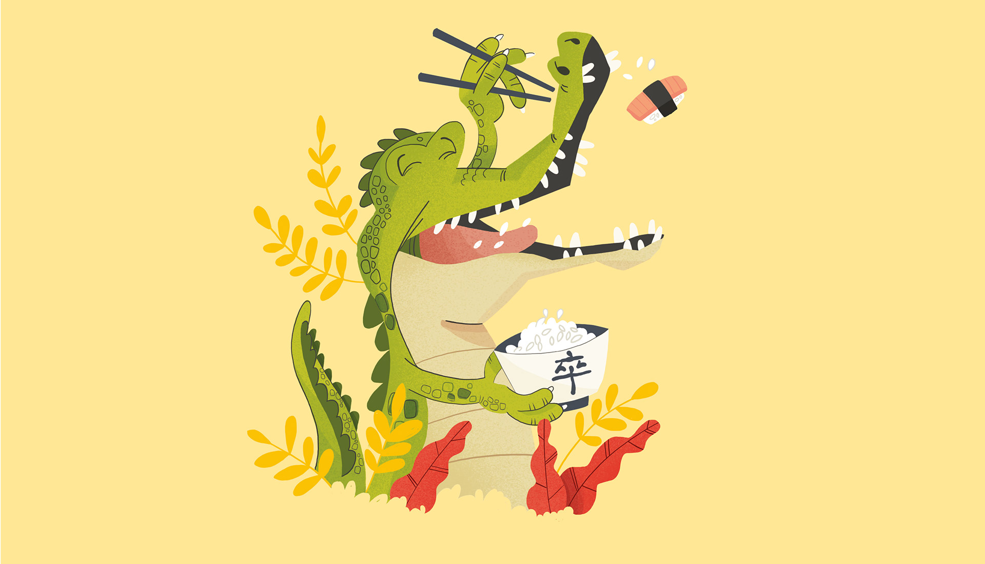 Crocodile eating sushi