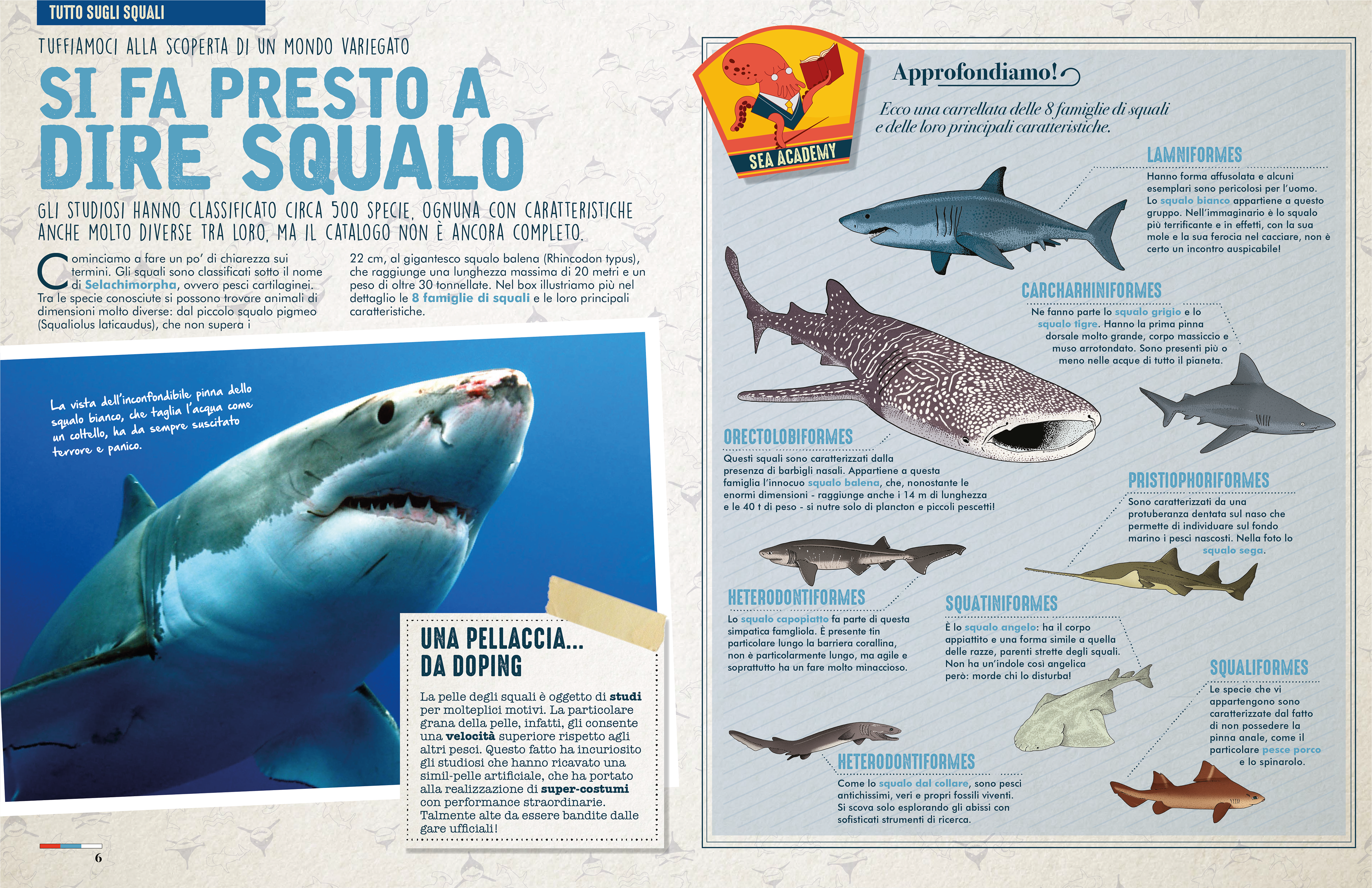 Editorial project about sea predators. My role: illustration, graphic design and page layout
