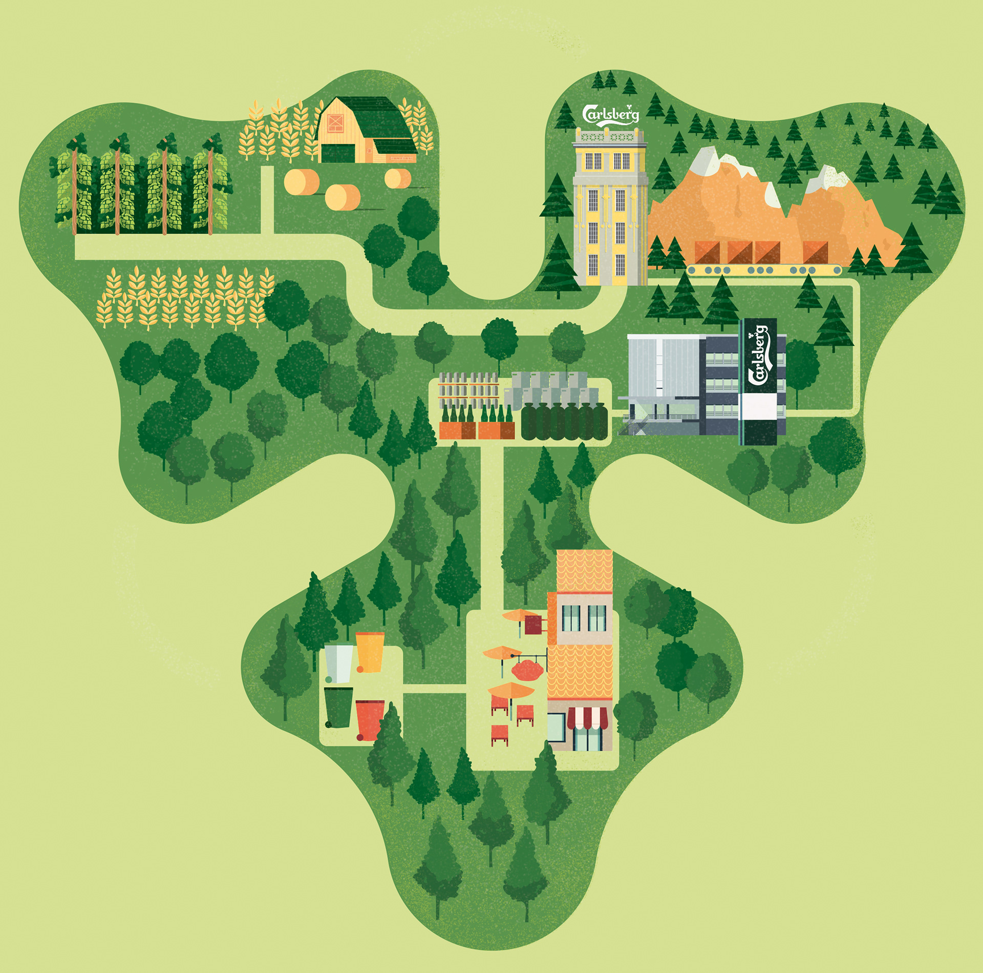 Art direction and illustration for SustainaBEERity 2014, the sustainability report for Carlsberg Italy.